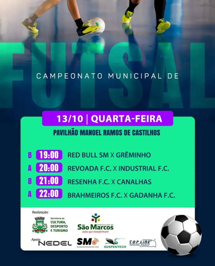 Após paralisação das disputas na quadra no Pavilhão Municipal Manoel Ramos de Castilhos (Ameixa), devido a Festa de Aparecida e dos Motoristas, que encerrou no domingo (10), as 12 equipes inscritas no Campeonato Municipal de Futsal 2021 retornam a partir de hoje à competição que reúne 180 participantes no total, entre atletas e comissões técnicas. A última edição ocorreu em 2019 e teve como campeã a equipe do Resenha, quando participaram 10 times.
