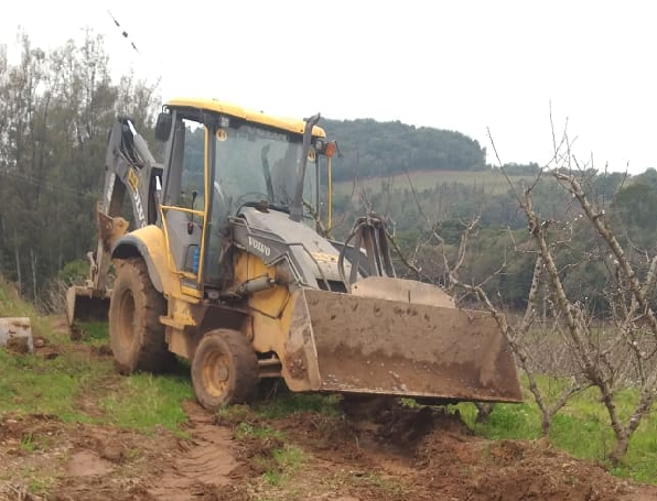 Conforme informações do registro policial realizado nesta quarta-feira (14), uma retroescavadeira da marca Volvo foi furtada na segunda-feira (12), feriado nacional. A máquina pertence a empresa BB Terraplenagem e estava sendo utilizada na construção do asfalto até a localidade.