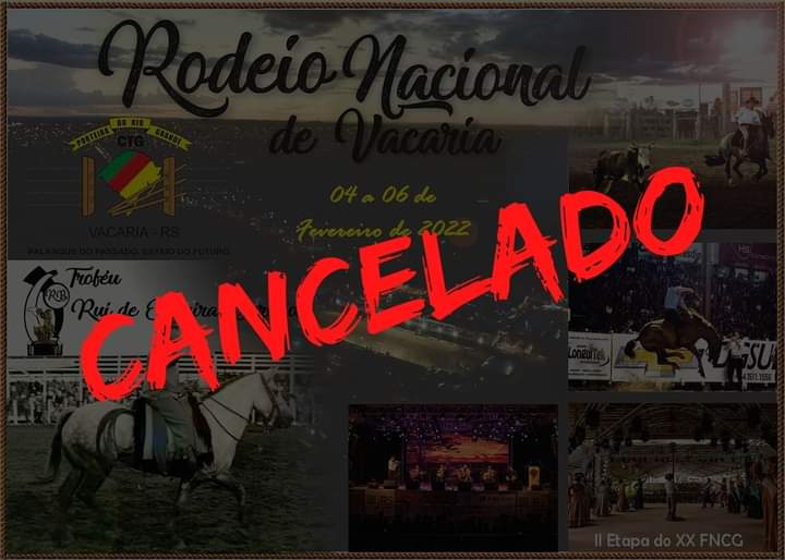 “Tendo em vista o aumento de casos da Covid – 19 na cidade de Vacaria, bem como a preocupação que a Patronagem do CTG Porteira do Rio Grande tem com os seus sócios, patrocinadores, apoiadores, simpatizantes e competidores, além do respeito pelas autoridades locais e profissionais da Saúde, entendemos não existir segurança sanitária necessária para a realização do Rodeio Nacional de Vacaria, que iria se realizar de 04 a 06 de fevereiro de 2022.