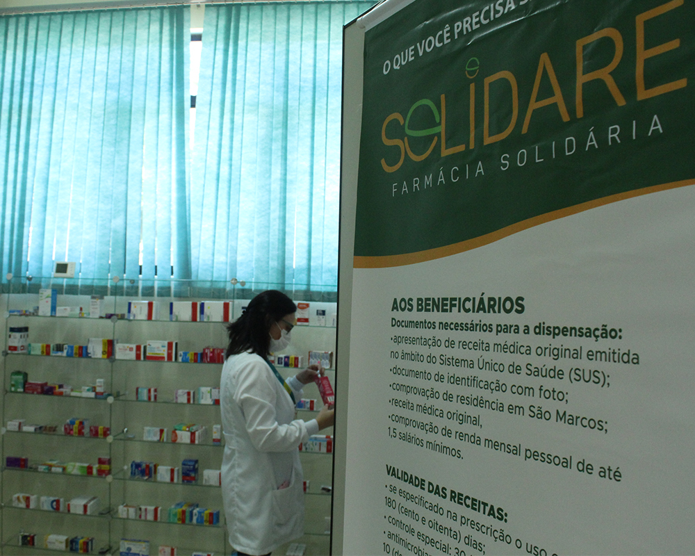 O programa SOLIDARE foi instituído no estado pela lei nº 15.339/2019. Atualmente, conforme informações da Secretaria Estadual de Saúde, há 37 Farmácias Solidárias no Rio Grande do Sul. Em São Marcos, a Lei N.º 3.008/22 instituiu o programa a nível municipal.