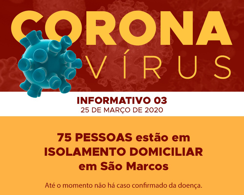 Assim sendo, em São Marcos, 75 pessoas foram orientadas pela Secretaria Municipal de Saúde a permanecerem em isolamento domiciliar por 14 dias. Dessas, 24 estão com sintomas de gripe; 26 pessoas estão em isolamento por serem familiares ou já terem tido contato com estes pacientes gripais e outras 25 cumprem a quarentena porque têm histórico recente de viagem para o exterior ou outros estados do país. Todavia, outras 19 pessoas já foram liberadas do isolamento por não apresentarem sintomas.