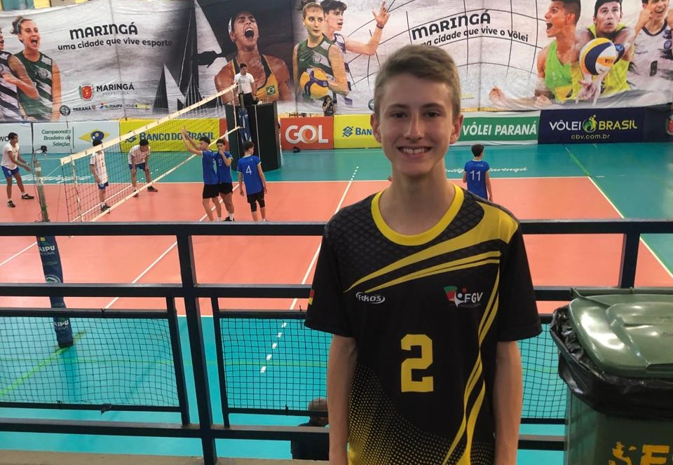 Luiz Miguel Gobbi Bertolazzi, de 14 anos, é o líbero da equipe e estreou esta manhã com vitória sobre a seleção do Amazonas