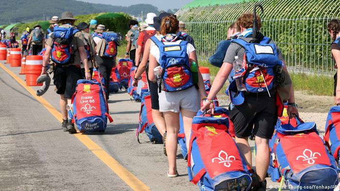 Teve início na manhã desta terça-feira (08/08) a evacuação de cerca de 43 mil jovens, a maioria entre 14 e 18 anos, que estavam reunidos em Saemangeum, na província de Jeolla do Norte, na Coreia do Sul, para participar do encontro global de escoteiros 25º Jamboree Mundial. A medida preventiva foi anunciada devido à chegada do tufão Khanun que deve ocorrer nos próximos dias, e afetou também um grupo de mais de mil brasileiros inscritos para participar do evento. A edição sul-coreana do evento, que acontece há cada quatro anos, já sofria com uma onda de calor que provocou a saída de delegações e com problemas na organização.