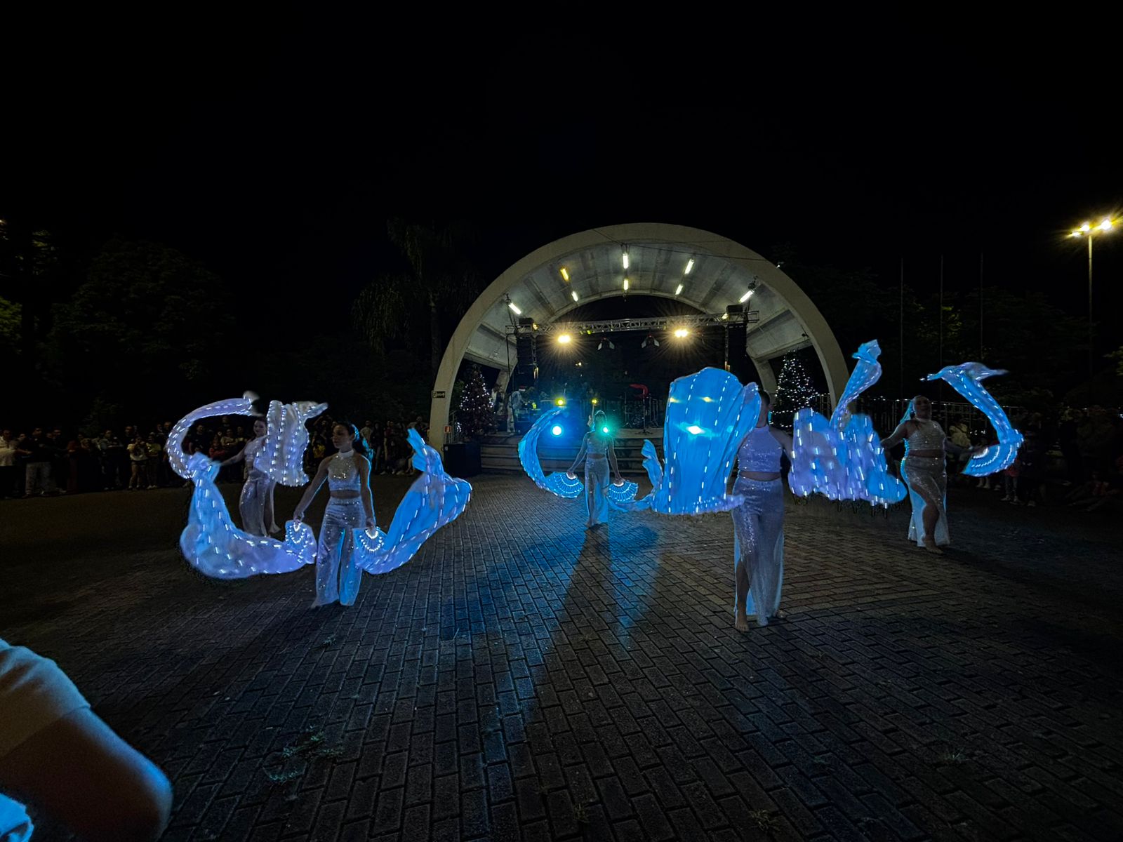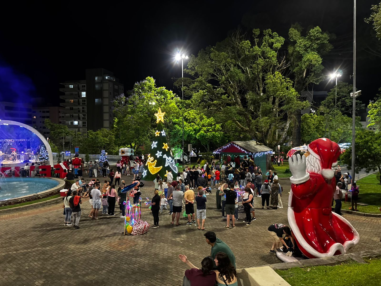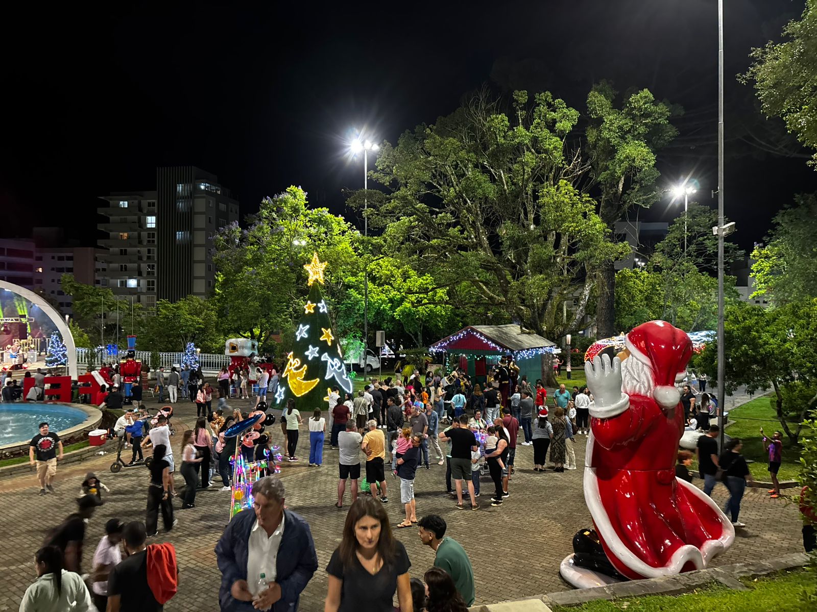 A chegada do Papai Noel transformou a praça central em um cenário de encanto, emoção e esperança, marcando oficialmente o início do Tempo de Natal no município. Abertura oficial também marcou o início dos passeios de Dindinho que neste ano serão gratuitos e acontecerão de terça a domingo até o Natal.