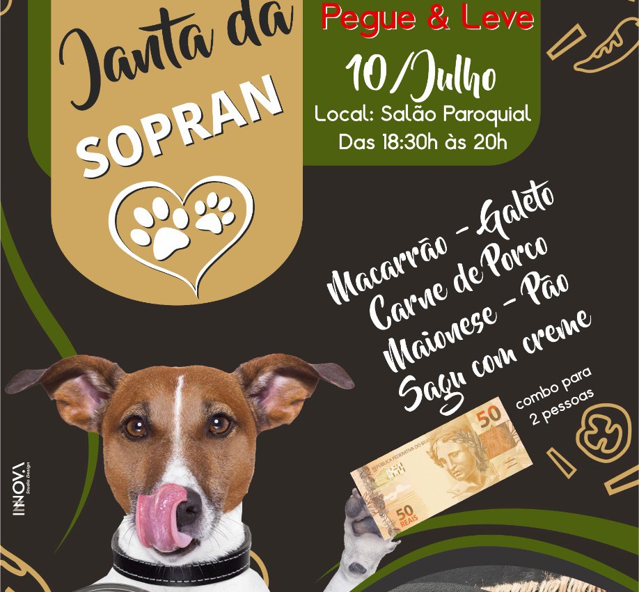 A Sociedade Protetora dos Animais (Sopran) de São Marcos promove no dia 10 de julho, sábado, mais uma edição do jantar beneficente em prol dos animais abandonados. Este ano o evento será realizado em formato de pegue e leve. A entrega dos combos acontece no salão paroquial das 18h30 às 20h.