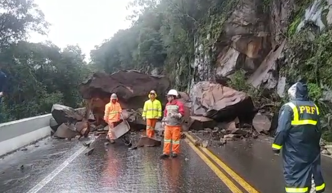 De acordo com a Polícia Rodoviária Federal, a primeira estimativa da equipe que vai realizar os trabalhos de remoção das pedras que caíram sobre a BR 116 na noite desta segunda-feira é que, possivelmente, o trabalho se estenda até o final da tarde de hoje.