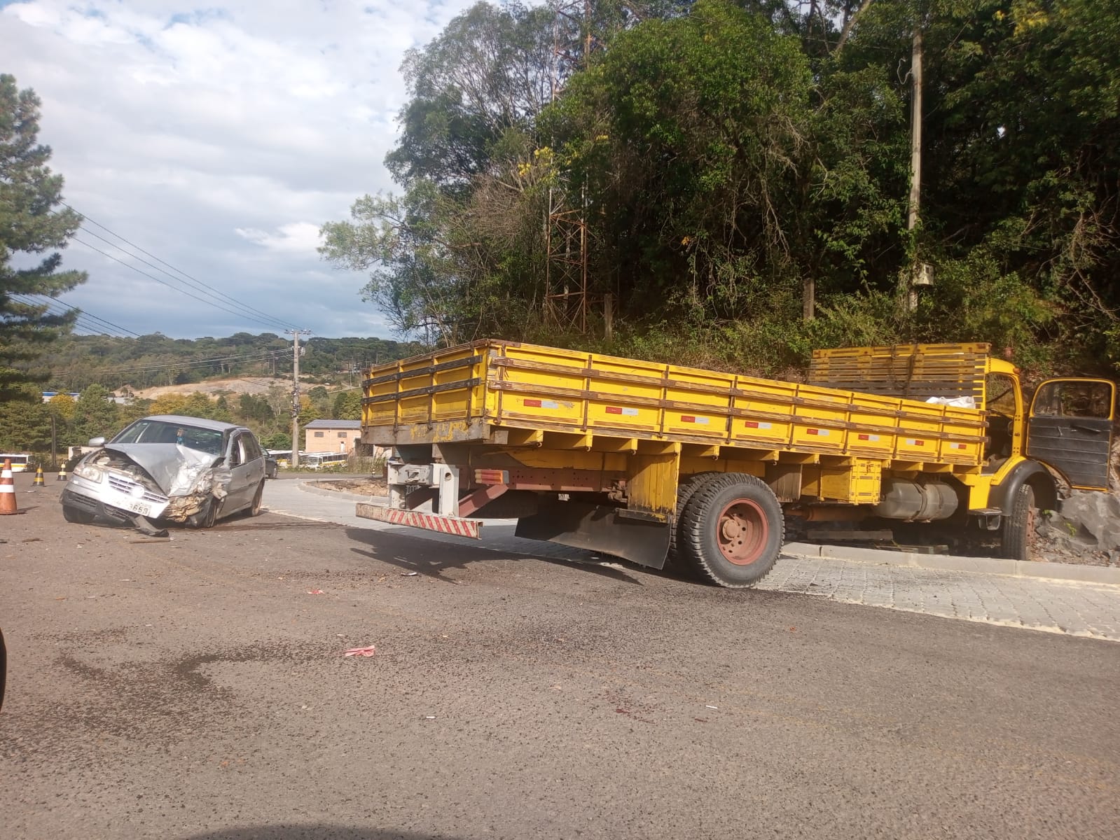 Três idosos ficaram feridos após colisão entre carro e caminhão na VRS 315 nesta terça