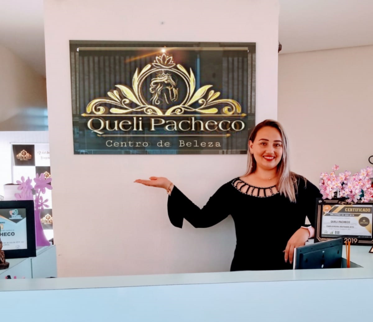 Com mais de 12 anos de experiência na área da beleza, a profissional Queli Pacheco, também ministra cursos relacionados a profissão