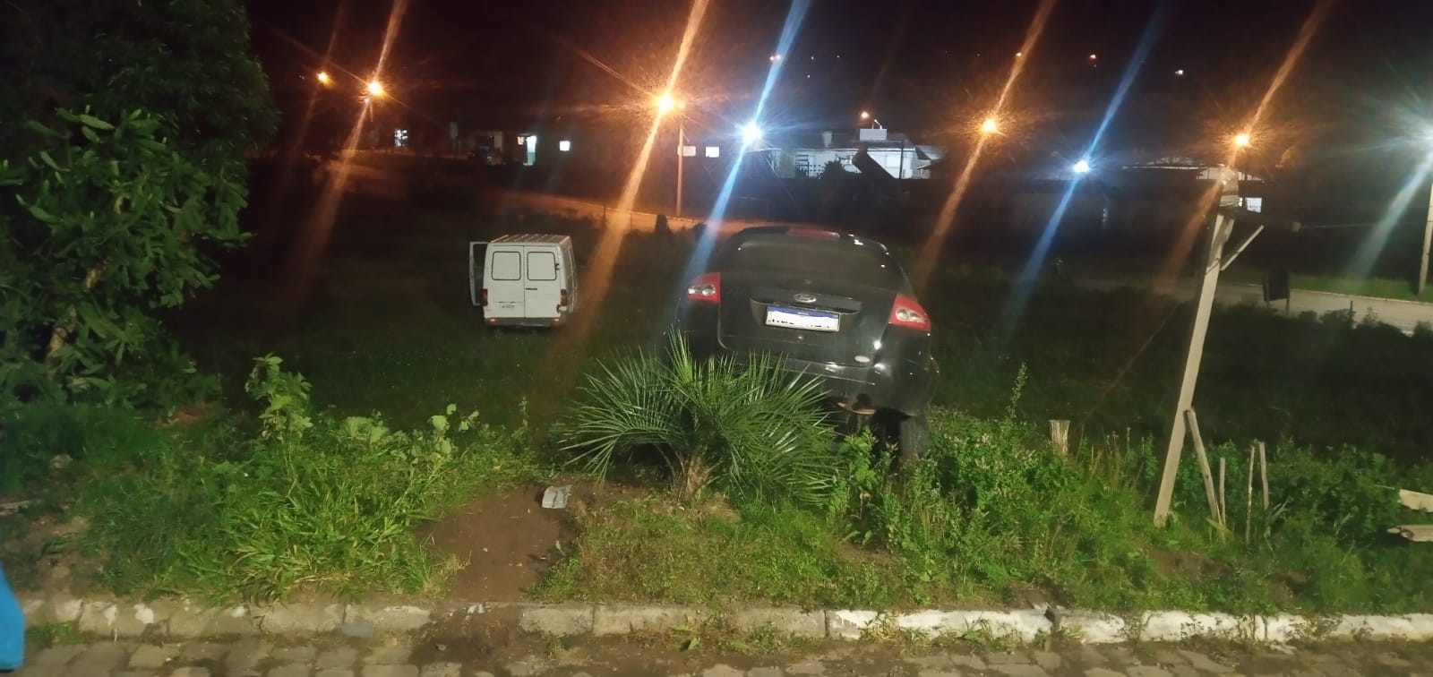 Uma van furgão teria perdido o freio e desceu a Rua dos Coqueiros em alta velocidade, atingindo um Ford/Ka que estava estacionado no final da rua, as margens de um terreno baldio.