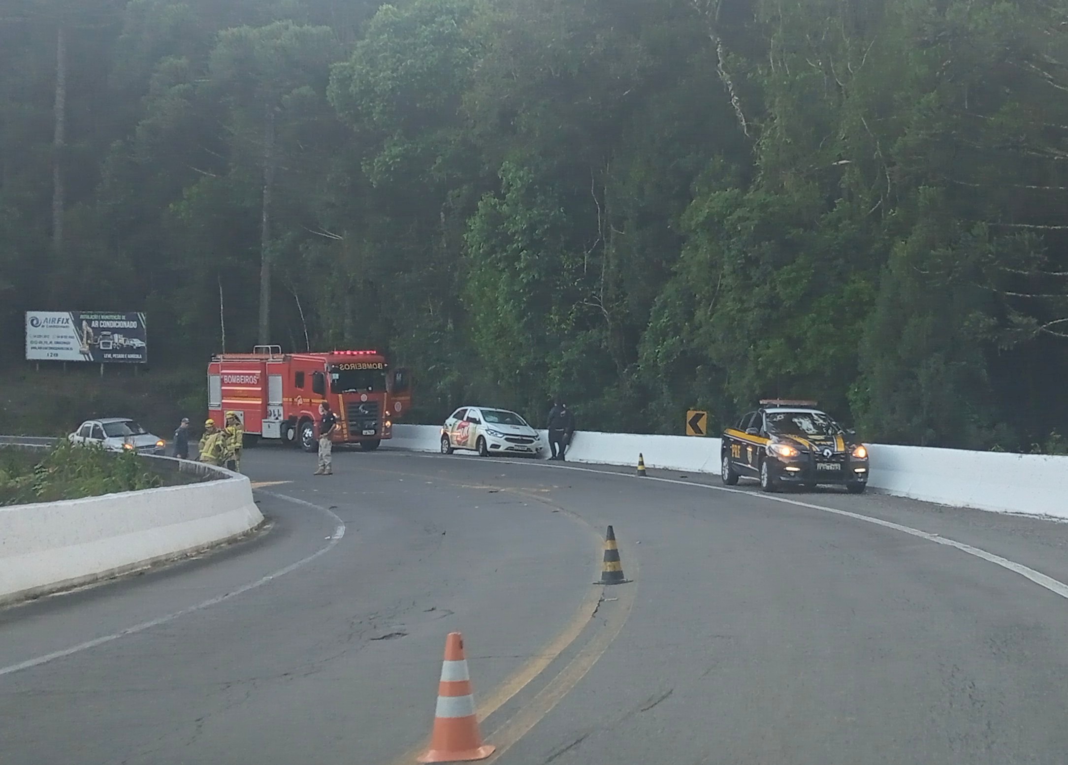 Os bombeiros cortaram a tora para removê-la do local e a PRF orientou o trânsito. Ninguém ficou ferido.