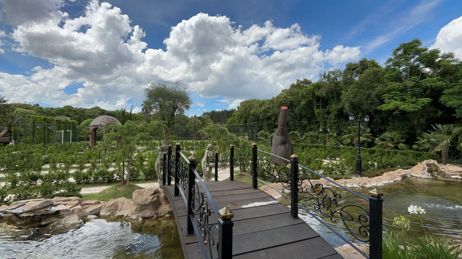 O espaço conta ainda com mata nativa, oferecendo amplas áreas de sombra, e uma estrutura de lazer que impressiona: piscina, parquinho infantil completo, campo de futebol sete, quadra de tênis e quadra de vôlei de areia. A combinação entre paisagismo, fauna integrada, áreas recreativas e organização estética coloca o jardim como um dos mais versáteis e encantadores da competição.