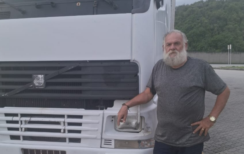 Hoje, ao lado de seu caminhão, Alexandre relembra o tempo de infância em São Marcos e dos carrinhos de lomba. Arquivo pessoal.