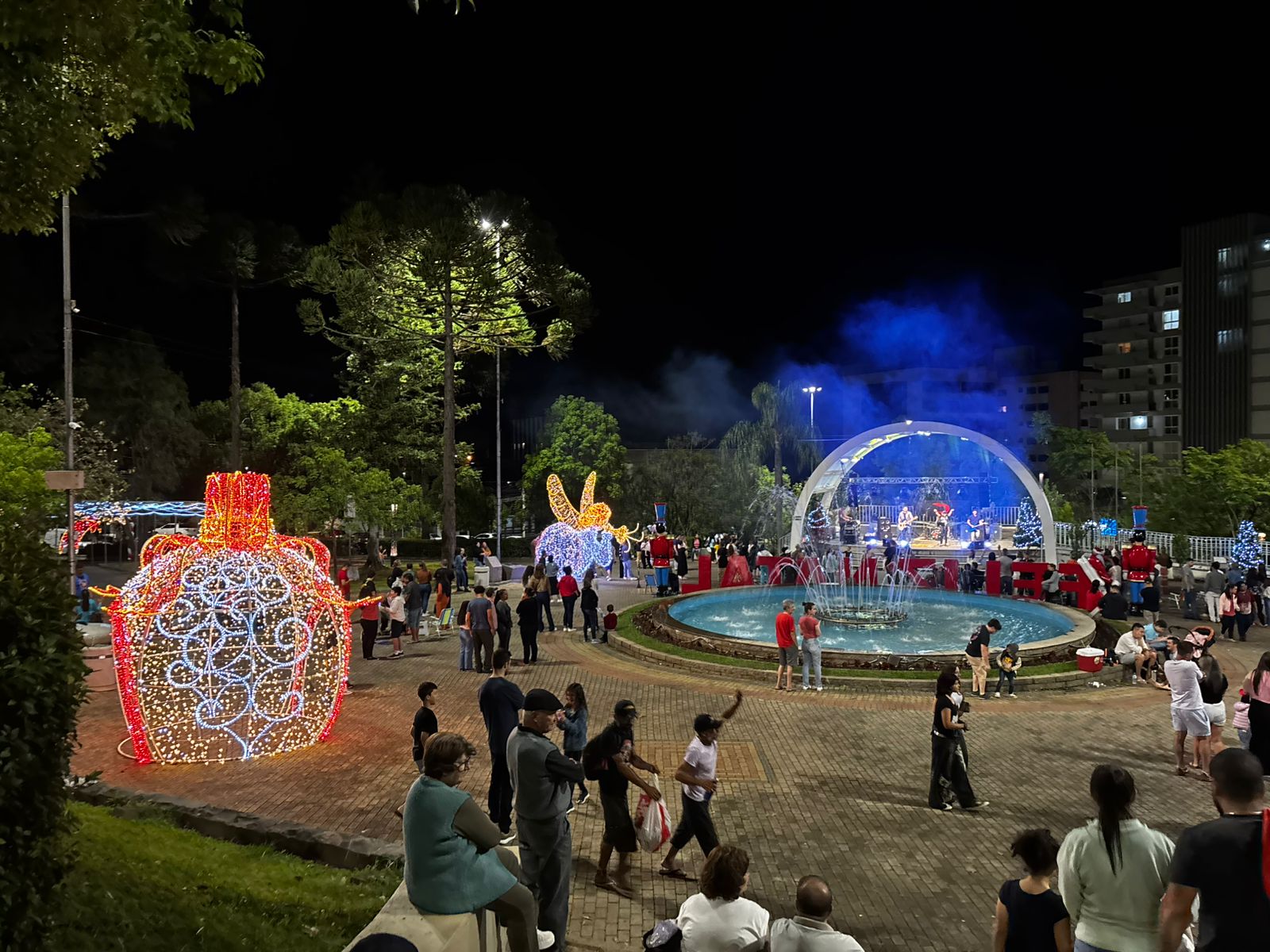 Sob o brilho das luzes natalinas e o sorriso atento das crianças, São Marcos viveu uma noite que ficará guardada na memória da comunidade. A chegada do Papai Noel transformou a praça central em um cenário de encanto, emoção e esperança, marcando oficialmente o início do Tempo de Natal no município.